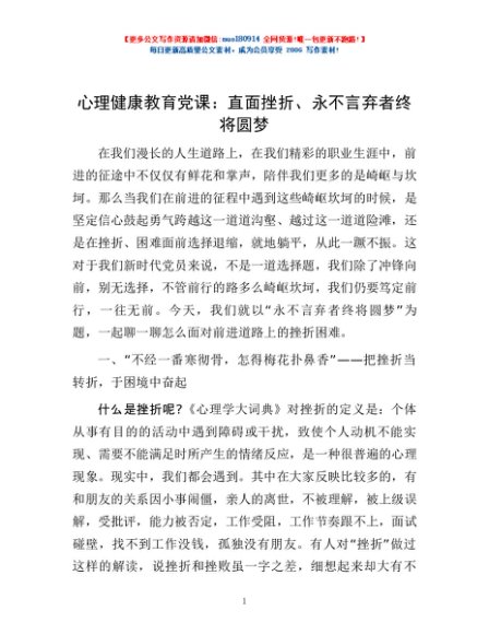 心理健康教育党课:直面挫折、永不言弃者终将圆梦