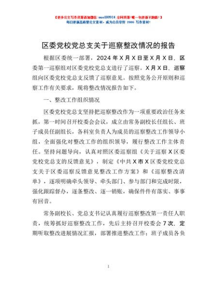/ 区委党校党总支关于巡察整改情况的报告
