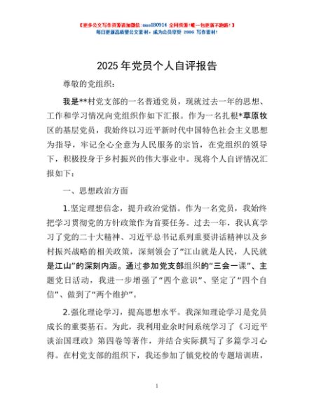 / 2025年党员个人自评报告