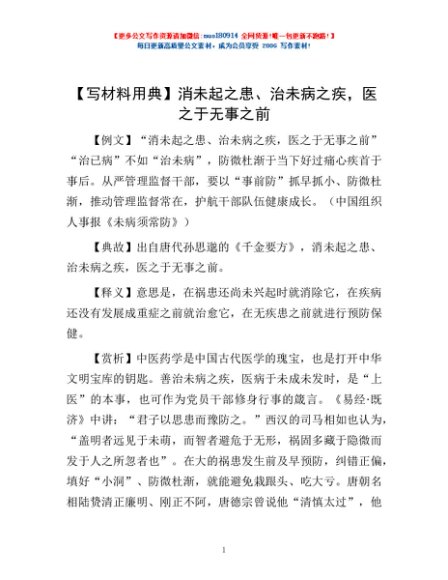 / 【写材料用典】消未起之患、治未病之疾,医之于无事之前