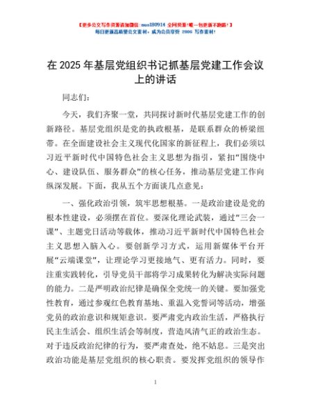 / 在2025年基层党组织书记抓基层党建工作会议上的讲话