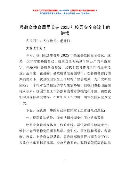 / 县教育体育局局长在2025年校园安全会议上的讲话