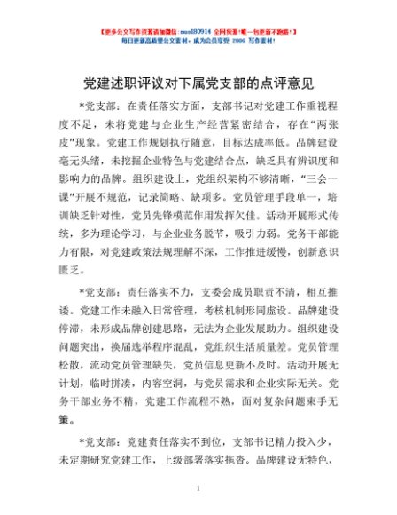 / 党建述职评议对下属党支部的点评意见