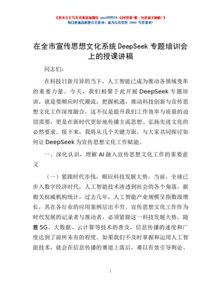 / 在全市宣传思想文化系统DeepSeek专题培训会上的授课讲稿