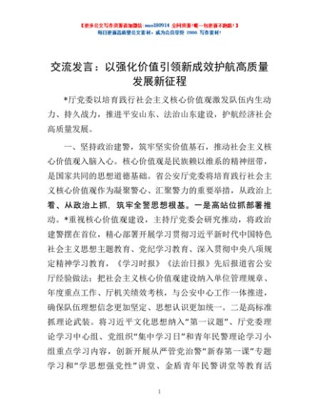 交流发言:以强化价值引领新成效护航高质量发展新征程