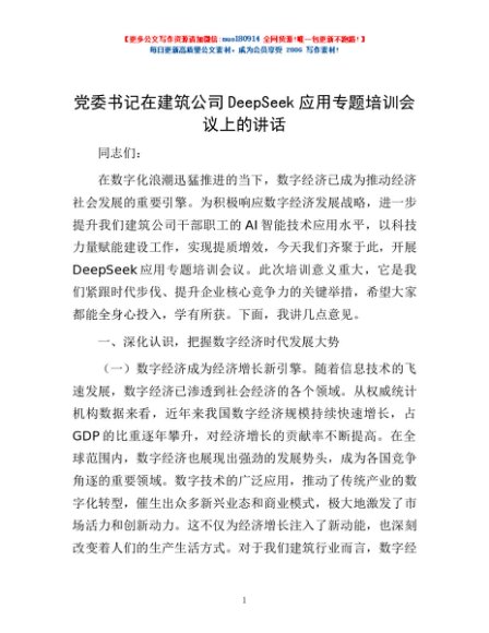 / 党委书记在建筑公司DeepSeek应用专题培训会议上的讲话