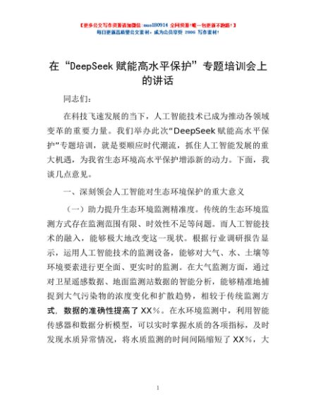 / 在“DeepSeek赋能高水平保护”专题培训会上的讲话