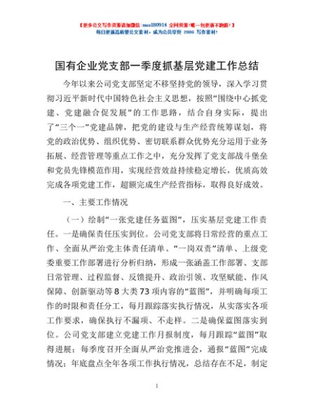 / 国有企业党支部一季度抓基层党建工作总结