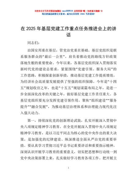 / 在2025年基层党建工作重点任务推进会上的讲话