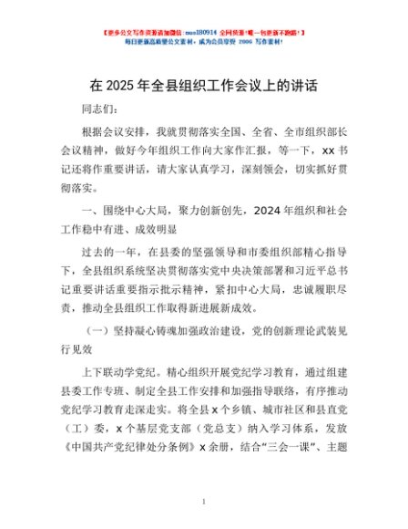 / 在2025年全县组织工作会议上的讲话