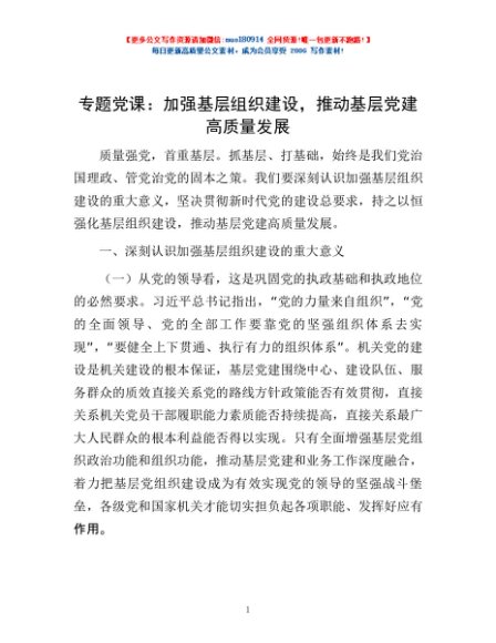 / 专题党课:加强基层组织建设,推动基层党建高质量发展