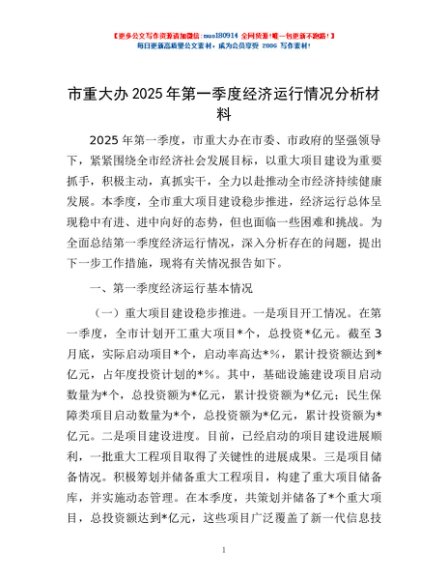 / 市重大办2025年第一季度经济运行情况分析材料