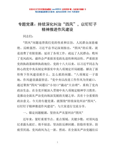 / 专题党课:持续深化纠治“四风”,以钉钉子精神推进作风建设