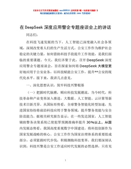 / 在DeepSeek深度应用警企专题座谈会上的讲话