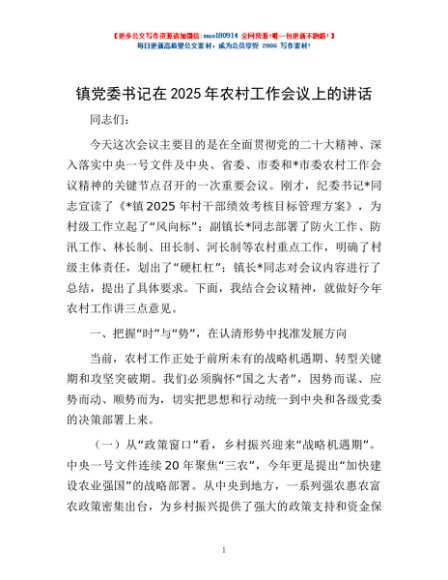 / 镇党委书记在2025年农村工作会议上的讲话