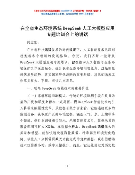 / 在全省生态环境系统DeepSeek人工大模型应用专题培训会上的讲话