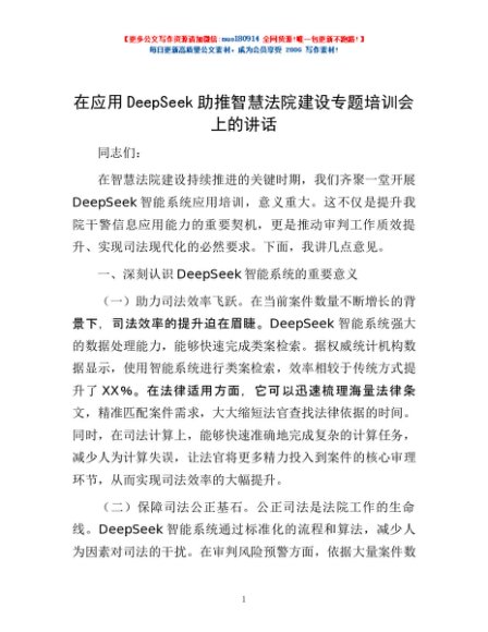 / 在应用DeepSeek助推智慧法院建设专题培训会上的讲话