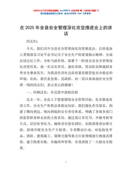 / 在2025年全县安全管理深化攻坚推进会上的讲话