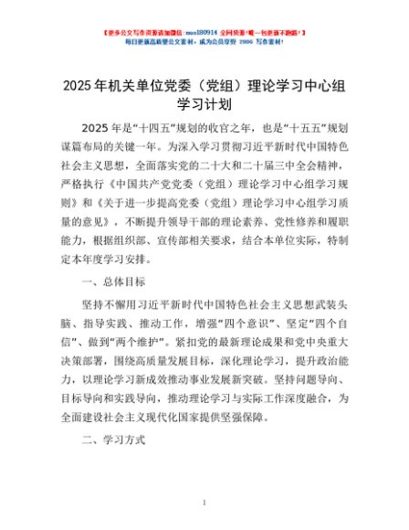/ 2025年机关单位党委(党组)理论学习中心组学习计划