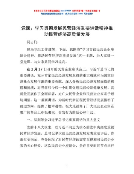 / 党课:学习贯彻发展民营经济重要讲话精神 推动民营经济高质量发展
