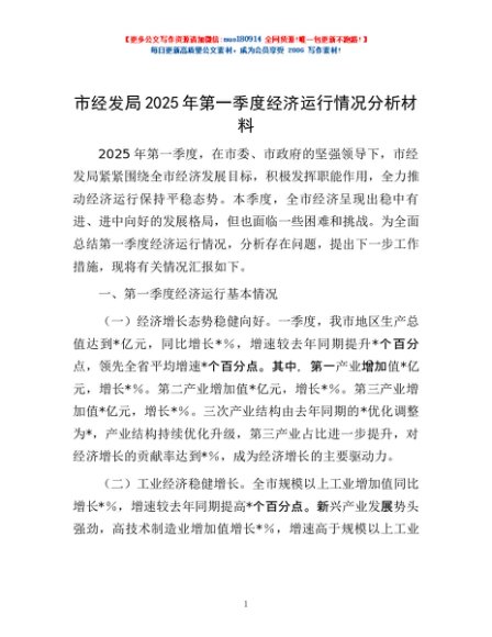 / 市经发局2025年第一季度经济运行情况分析材料