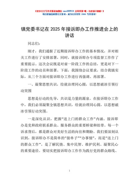 / 镇党委书记在2025年接诉即办工作推进会上的讲话