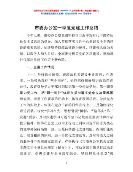 / 市委办公室一季度党建工作总结