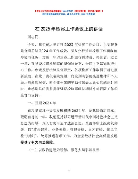 / 在2025年检察工作会议上的讲话