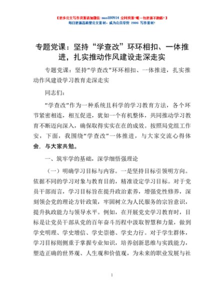/ 专题党课:坚持“学查改”环环相扣、一体推进,扎实推动作风建设走深走实