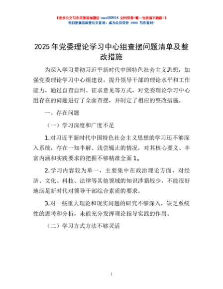 / 2025 年党委理论学习中心组查摆问题清单及整改措施