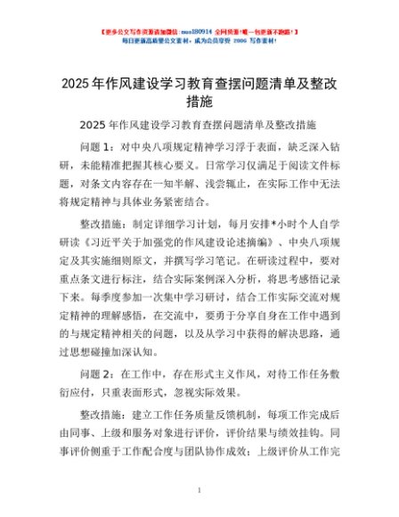 / 2025年作风建设学习教育查摆问题清单及整改措施