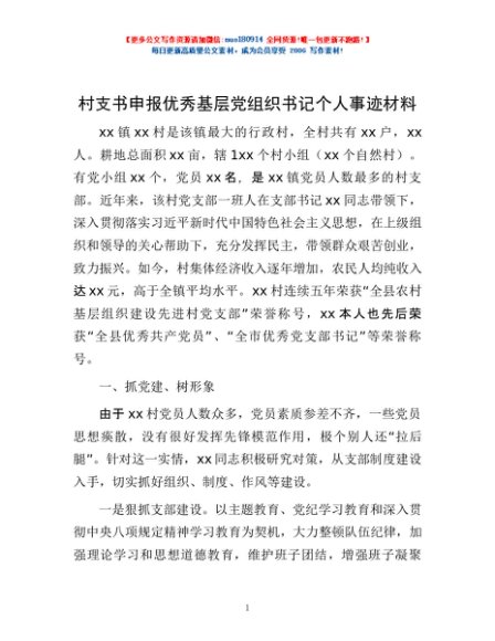 / 村支书申报优秀基层党组织书记个人事迹材料