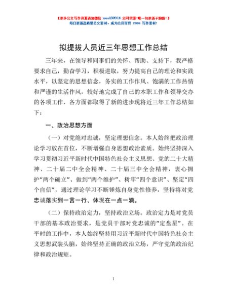 拟提拔人员近三年思想工作总结