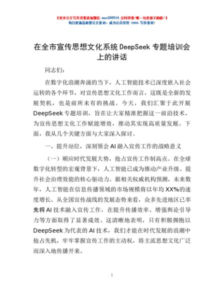 / 在全市宣传思想文化系统DeepSeek专题培训会上的讲话