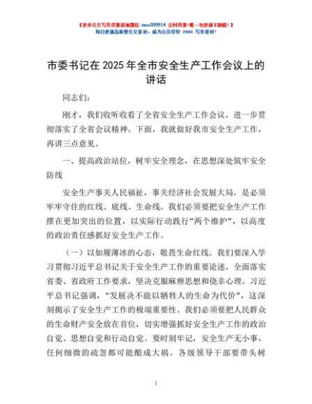 / 市委书记在2025年全市安全生产工作会议上的讲话