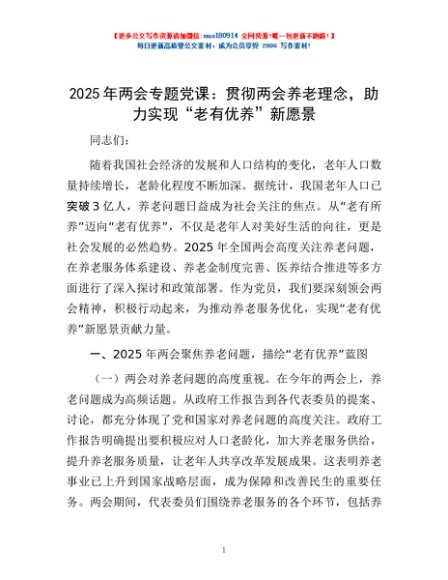 / 2025年两会专题党课:贯彻两会养老理念,助力实现“老有优养”新愿景