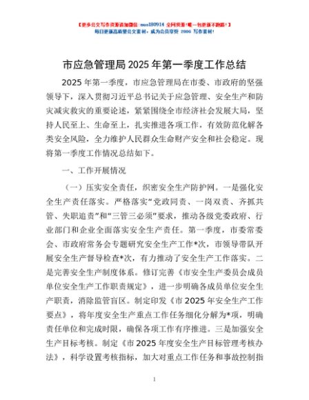 / 市应急管理局2025年第一季度工作总结