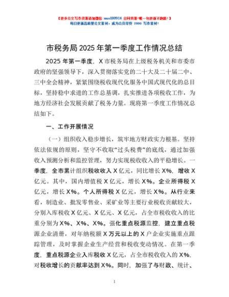 / 市税务局2025年第一季度工作情况总结