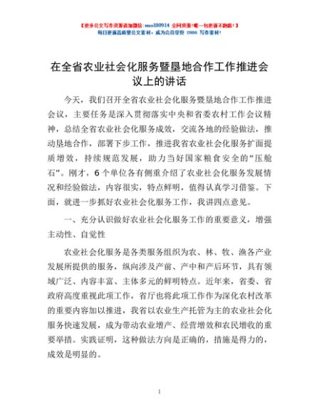 / 在全省农业社会化服务暨垦地合作工作推进会议上的讲话