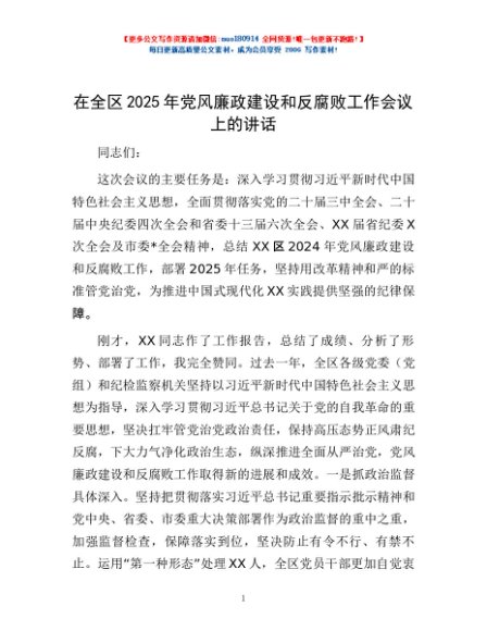 / 在全区2025年党风廉政建设和反腐败工作会议上的讲话
