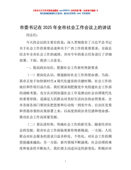 / 市委书记在2025年全市社会工作会议上的讲话
