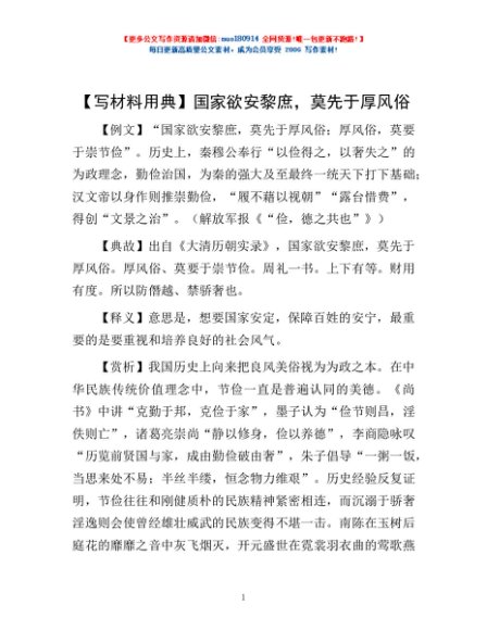 / 【写材料用典】国家欲安黎庶,莫先于厚风俗