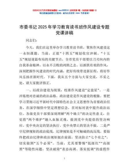 / 市委书记2025年学习教育读书班作风建设专题党课讲稿