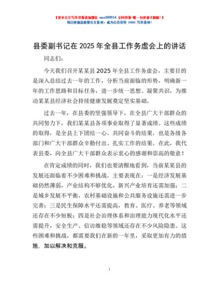 / 县委副书记在2025年全县工作务虚会上的讲话