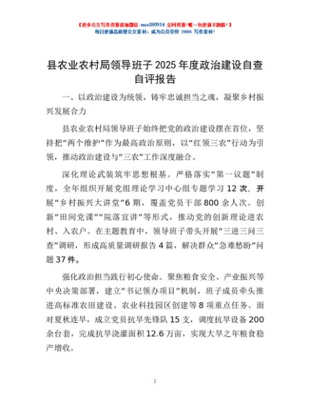 / 县农业农村局领导班子2025年度政治建设自查自评报告