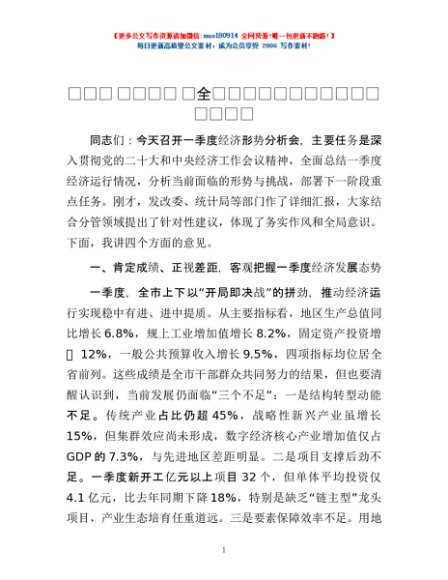 / 市长在2025年全市一季度经济形势分析会上的讲话