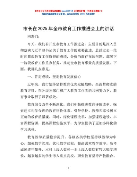 / 市长在2025年全市教育工作推进会上的讲话