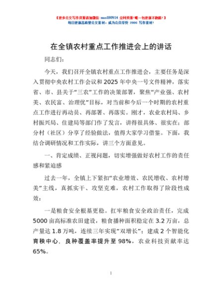 / 在全镇农村重点工作推进会上的讲话