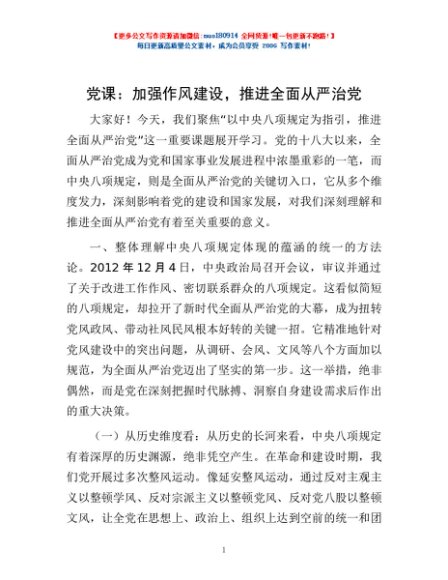 / 党课:加强作风建设,推进全面从严治党
