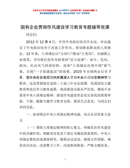 / 国有企业贯彻作风建设学习教育专题辅导党课
